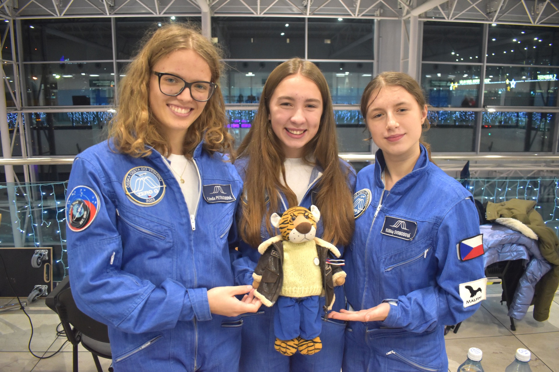 Nejvíc největší radost jsem ale měl ze setkání s Lindou, Julčou a Éliškou. A proč? Protože to jsou holky, co si vyzkoušely stav bez tíže, jak tady tuhle byl Airbus Zero-G. Museli jsme je s Pytlákem pořádně vyzpovídat, jaký to bylo, jak se cejtily, třeba i jestli jim nebylo šoufl, když si tak plovaly vzduchem a najednou nic nevážily...